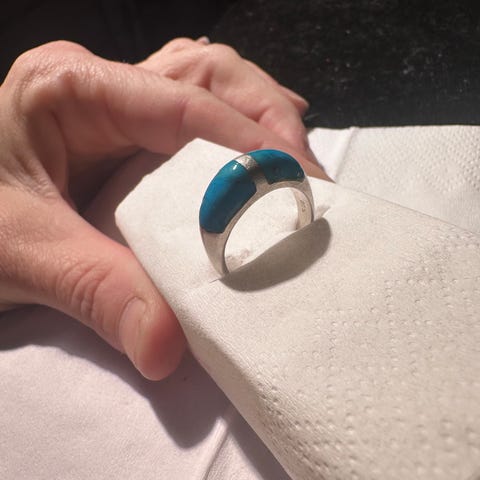 Lille Gammel vintage 925 sølvring men en sort stribe (som jeg mener er oxyd men jeg er usikker på dette)