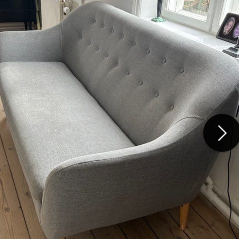 Jeg har denne her gode og dejlige sofa 2 personers til salg man ligger god og blødt i den man kan skifte stoffet på sofaen det der er på nu er sort jeg har målt sofaen og målene hedder Højde 79 cm Brede 105 cm Længde 174 cm jeg gav selv 4000 kr for den kom med bud