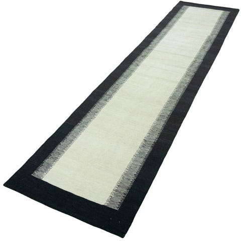 Waziri kelim løber tæppe i uld med flerfarvet mønster. Tæppet har et geometrisk, kelim-inspireret design i nuancer af blandt andet orange, turkis, beige og rød. Velegnet som gangløber eller til smalle rum. Materialet fremstår som fladvævet uld med frynser i enderne.