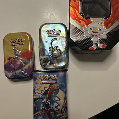 Pokémon samlebokse i metalæsker. Æskerne er udformet til opbevaring eller udstilling af Pokémon-samlekort og har vindue på forsiden, så kortene kan ses. Motiverne på æskerne viser forskellige Pokémon-figurer. Velegnet til organisering og beskyttelse af kort eller som samleobjekter.