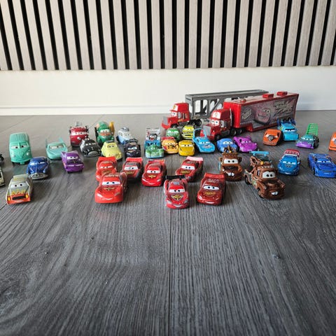 Stor Disney Pixar Cars lastbil med trailer og flere biler sælges samlet.
