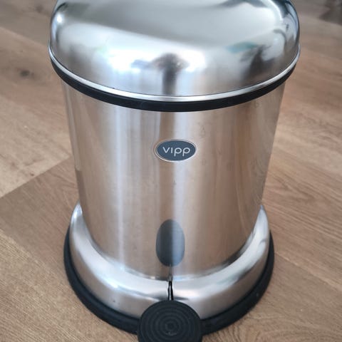Vipp skraldespand i krom i største model. Spanden inde i kræver en rengøring og trædepedalen virker ikke - sælges derfor billigt. Men ellers fin. Skal afhentes