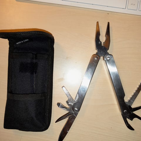 MULTITOOL MED KNIV, FIL, NEGLERENSER, CIGARKLIPPER, TOMMESTOK, SKRUETRÆKKER.