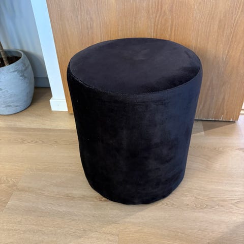 Lækker og stilren lys pink puf/fodskammel i pink velour med opbevaring.