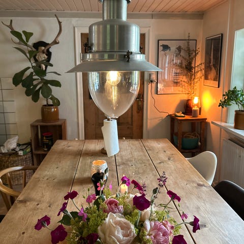 Lampe, Sjov og dekorativ lampe lavet af en gl tysk blæselampe. Den kommer fra Helsingør skibsværft og er fra 40’erne. En rustik og anderledes ting