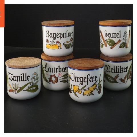 Krukkernerne er til birkes, bagepulver, vanilje, kardemomme, peber, kanel, karry og paprika.