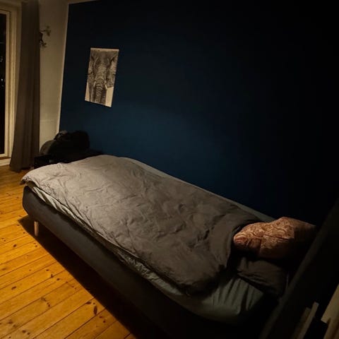 Topmadras medfølger hvis det ønskes. Denne har ingen pletter da der altid har ligget en rullemadras på.
