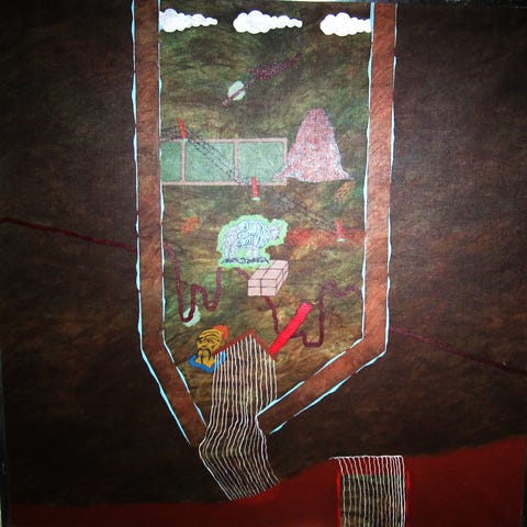 Bjørn T. Hansen (1942-2007). Komposition med titlen vulkan - akryl på lærred og indrammet. Originalt sign. BTH 76. Rammeydermål: 75 x 94 cm