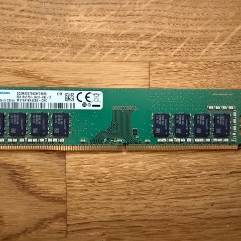 Sælger et sæt (2 stk.) Samsung 8GB DDR4 RAM-stænger (Model: PC4-2666V-UA2). I alt 16GB hukommelse, der kører stabilt og fejlfrit.