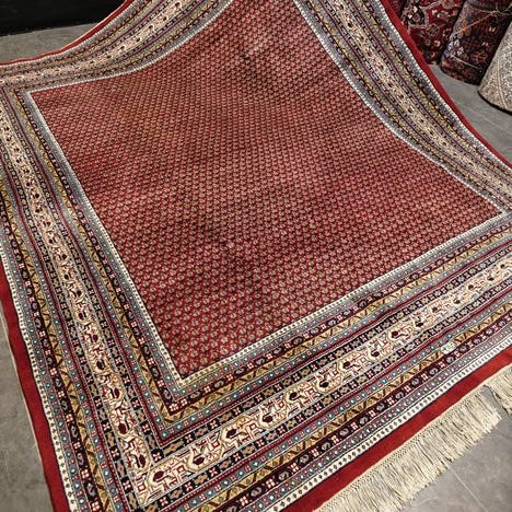 Oprindelse: Indien; Model: Top Indo Mir Rug; håndvævet tæppe i uld på bomuld, 315 × 250 cm, fra det 21. århundrede, i meget god stand. Klik på den blå "gå til varen" knap, for at købe eller byde på denne vare. Den samlede pris vil blive vist inden du afgiver dit bud.