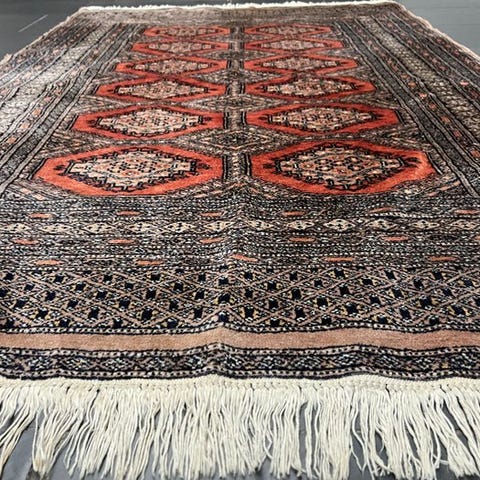 Et håndknyttet orientalsk tæppe i uld på bomuld fra Pakistan, model Buchara - Gereinigd, 350 cm × 255 cm, fremstillet i slutningen af det 20. århundrede, i meget god stand, professionelt rengjort, med certifikat. Klik på den blå "gå til varen" knap, for at købe eller byde på denne vare. Den samlede pris vil blive vist inden du afgiver dit bud.