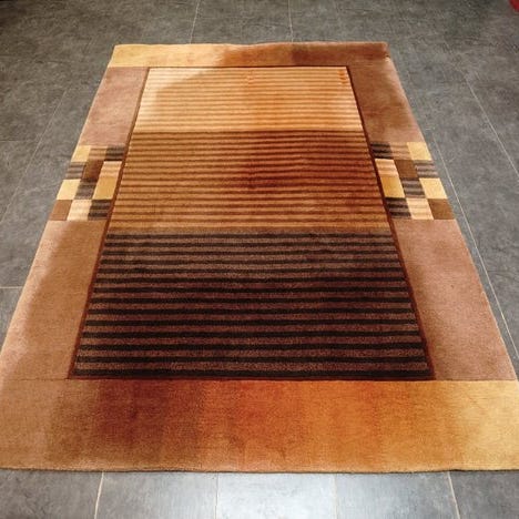 Denne håndflettede Nepal Modern måtte, rengjort, uld på bomuld, oprindelse Nepal, størrelse 235 x 171 cm, i meget god stand. Klik på den blå "gå til varen" knap, for at købe eller byde på denne vare. Den samlede pris vil blive vist inden du afgiver dit bud.