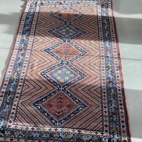 Afghansk zadeltas i uld på uld, 35 × 29 cm, fra midten af det 20. århundrede, 400 g, i meget god stand. Klik på den blå "gå til varen" knap, for at købe eller byde på denne vare. Den samlede pris vil blive vist inden du afgiver dit bud.