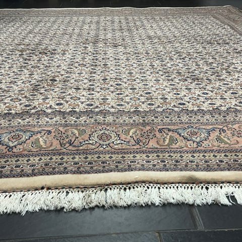 Håndvævet Tabriz tæppe fra Indien, professionelt renset, i meget god stand, mål 358 × 252 cm, uld på bomuld, 21. århundrede. Klik på den blå "gå til varen" knap, for at købe eller byde på denne vare. Den samlede pris vil blive vist inden du afgiver dit bud.