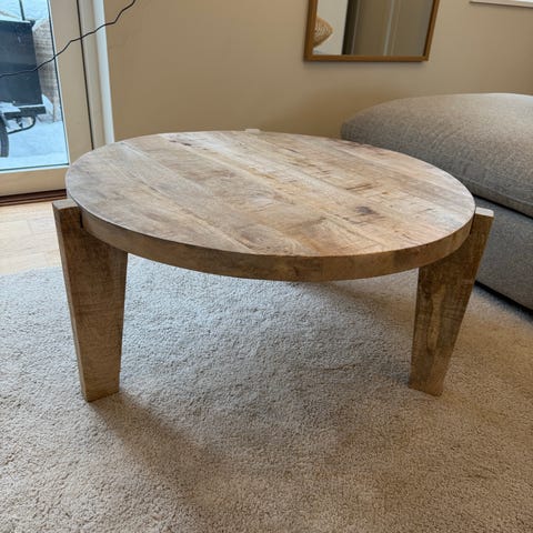 Flot Vega sofabord fra møbelkompagniet. Det er helt nyt, og vi er enormt glade for det, men vi har fået en datter, som vi ønsker har plads til at lege på gulvtæppet. Nypris er 5000