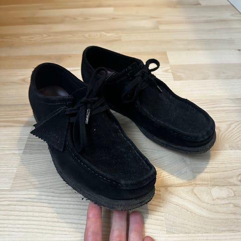 Clarks loafers og sejlersko i str. 41. Skoene er i brun ruskind med synlige kontrastsyninger og gummisål med mønster for bedre greb. Indvendig foring i lysere materiale. Klassisk slip-on model egnet til hverdagsbrug og fritid.