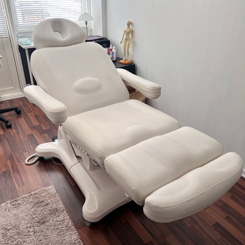 Behandlingsleje og udstyr behandlingsbriks, taburet og rullebord hvid og sort