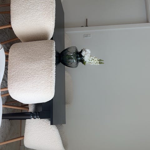 ANNA SPISEBORDSSTOL I TEDDYSTOF MED ARMLÆN