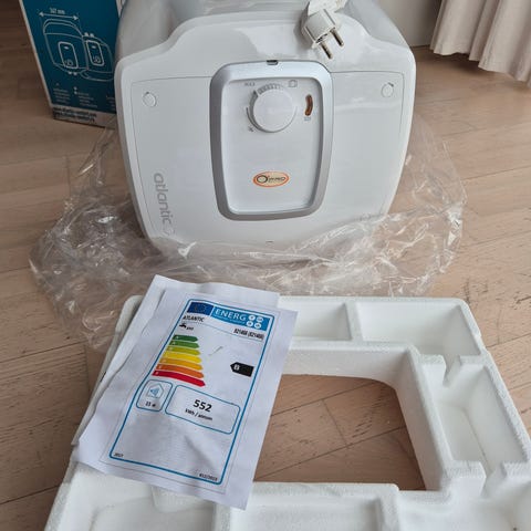 Brugt (alder ukendt) varmtvandsbeholder på 30 liter.