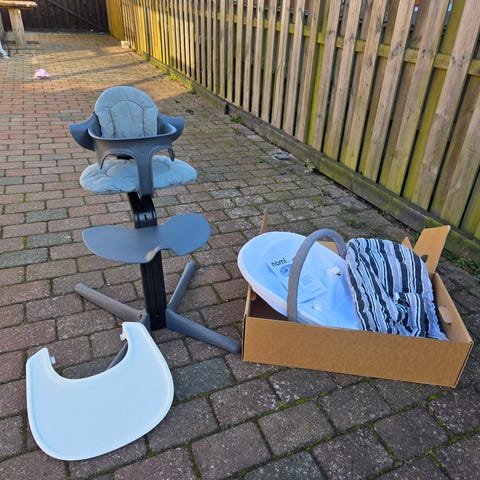 Stokke Nomi højstol med bøjle og babyindsats sort