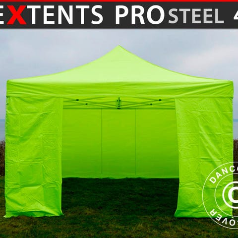 Foldetelt FleXtents PRO 4x4m Neongul/grøn, inkl. 4 sider