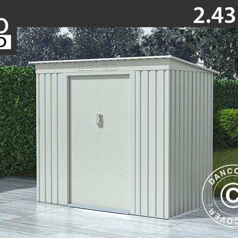 Redskabsskur i elegant paneldesign. Det stærke og holdbare metalredskabsskur er perfekt til opbevaring af haveredskaber og andet udstyr, så du har det lige ved hånden. Giver beskyttelse og sikker opbevaring, og det skrå tag forhindrer, at der samler sig vand oven på skuret.