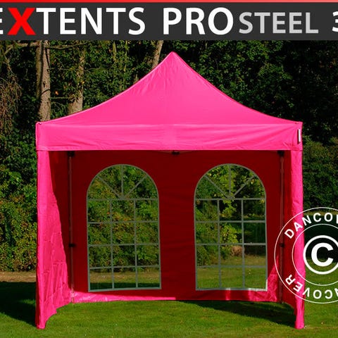 Foldetelt FleXtents PRO Steel 3x3m Lilla, inkl. 4 sider