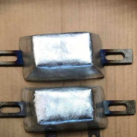 Tecnoseal zinkanoder i rektangulær form med gennemgående hul i hver ende. Str.: 35 x 72 x 350 mm. Hulafstand er 200 mm. Katalogpris 1.310,00 kr. pr. stk. Køb 2 og betal for 1.
