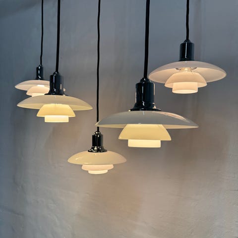 Lampen er designet af Poul Henningsen og produceret hos Louis Poulsen.