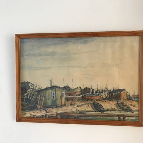 Akvarel Jørgen Birch, 1954 år gl., b: 73 h: 57, Akvarel malet af By ved Loire i Frankrig