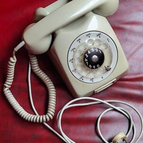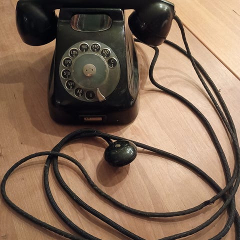 Kirk drejeskivetelefon , ca. 1960, med stofledning