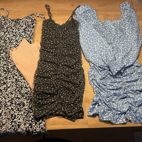 Gina Tricot og andre mærker pige tøjpakke i str. 146 i multifarvede nuancer. Pakken indeholder blandet pigetøj, herunder flere overdele og underdele i forskellige farver og materialer, egnet til en pige i størrelse 146. Tøjet kan bruges til både hverdag og fritid og består af forskellige styles, som kan kombineres på flere måder.
