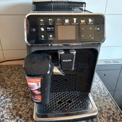 Philips fuldautomatisk espressomaskine i sort. Maskinen har integreret mælkebeholder og frontbetjening via touchpanel. Velegnet til tilberedning af forskellige kaffedrikke som espresso, kaffe og mælkebaserede drikke. Maskinen har udløb til både kaffe og mælk samt aftagelig drypbakke for nem rengøring.