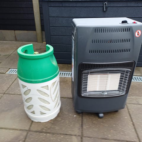 Gasvarmeovn med en ny og forseglet 10 kg letvægtsflaske gas. Samlet pris