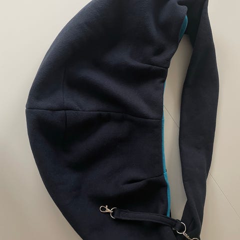 Sort taske til små hunde med blød, polstret inderside og fast bund. Tasken har åbning i den ene side, så hunden kan kigge ud, samt bærestropper/skulderrem. Velegnet til små hunde. Den er ubrugt.