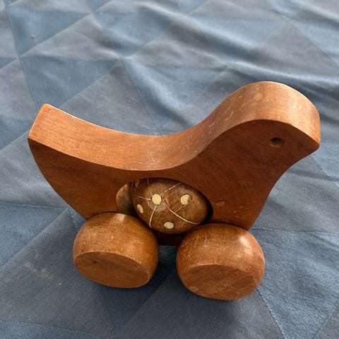 Træ legetøjsfugl med hjul (str. 13x15x7 cm)