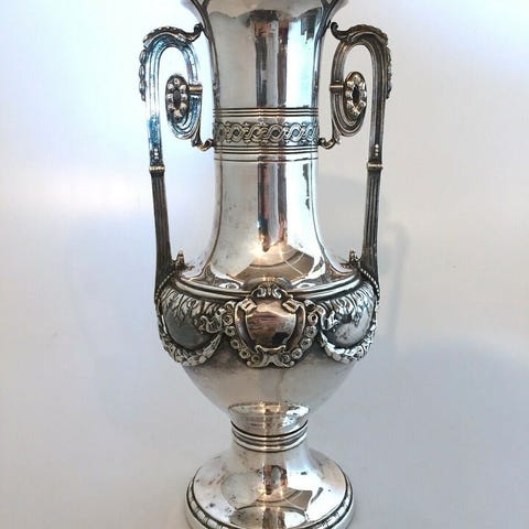 Dekorativ pokal på fod med annanas mønster. til blomster, slik eller andet.