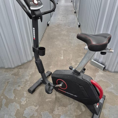 Hammer Cardio XT5 motionscykel i hvid. Cyklen har justerbart sæde og styr samt pedaler med rem. Egnet til indendørs konditionstræning og genoptræning. Leveres med brugermanual til opsætning og betjening. Rigtig god stand - skal afhentes.