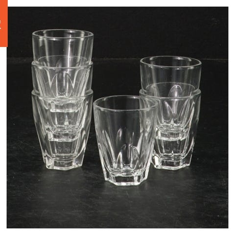 Et sæt af to små snapseglas, der måler 6 cm i højden. Solidt og enkelt design