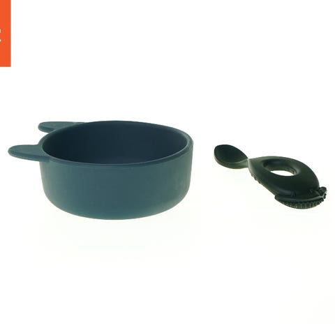 Dette er et spise sæt til børn lavet af silikone. Sættet består af en tallerken, en skål, en kop og en ske, alle designet med en sød dyremotiv. Tallerken, skål og kop har små ører, hvilket gør dem både funktionelle og sjove for børn. Farven er en rolig blå, og alle dele er lette at rengøre og skridsikre. Tags: børn, spise, silikone, blå, dyremotiv.