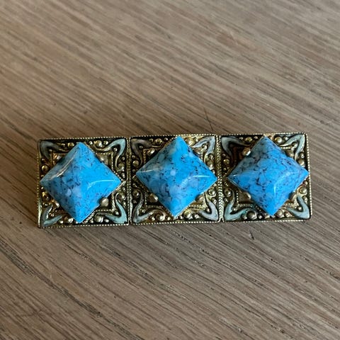 Vintage broche med grøn sten (str. 3 cm)