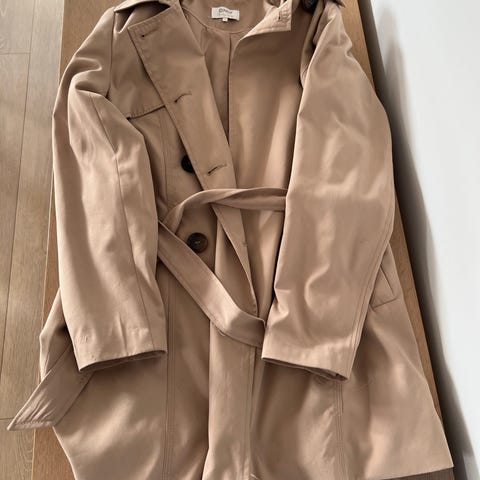 ONLY frakke til kvinder i størrelse XL. Frakken er grå og fremstillet i uldmateriale med glat foer indvendigt. Modellen har dobbeltknaplukning foran og to sidelommer. Længden går ned over hofterne og giver god dækning på overkroppen. Egnet som yderjakke i køligere vejr.