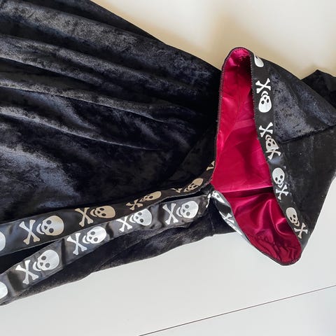 Kappen er en grøn kappe med hætte og har en række farverige prydnitter ned langs ryggen. Den er lavet af et fløjlsagtigt materiale og er foret indvendigt.