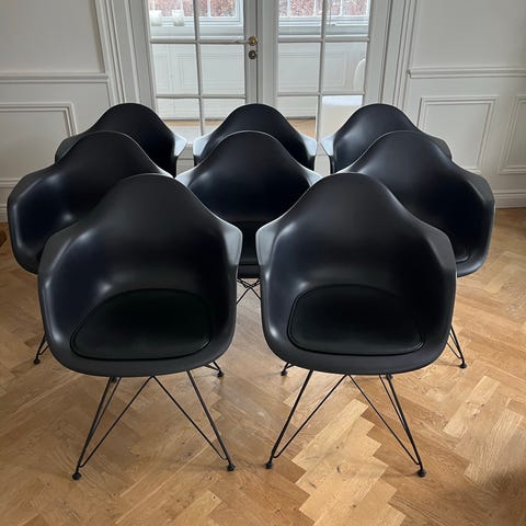 To Dar stole fra Eames med 2 skind sæder fra Bent Hansen.