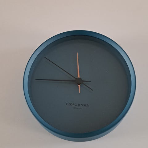 Nyt/ubrugt vægur i stål med hvid urskive fra Georg Jensen sælges.