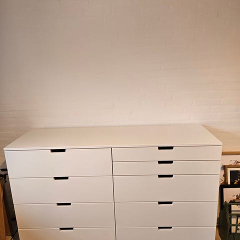 Kommode med 12 skuffer, hvid, 160x99 cm