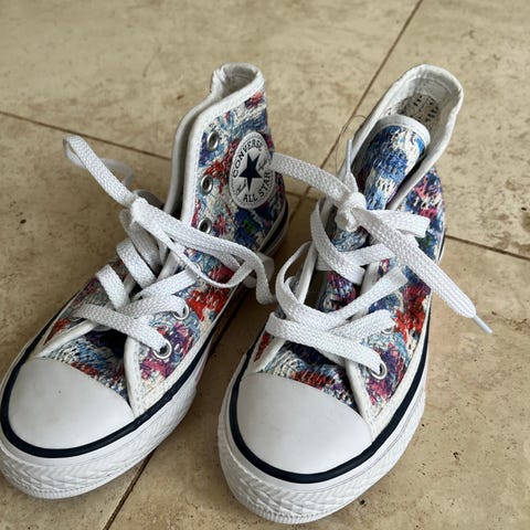 Et par sko i sort lærred med elastik snørebånd, der sidder fast og velcrolukninger i siderne. Skoene er nyvaskede og fremstår i fin stand.