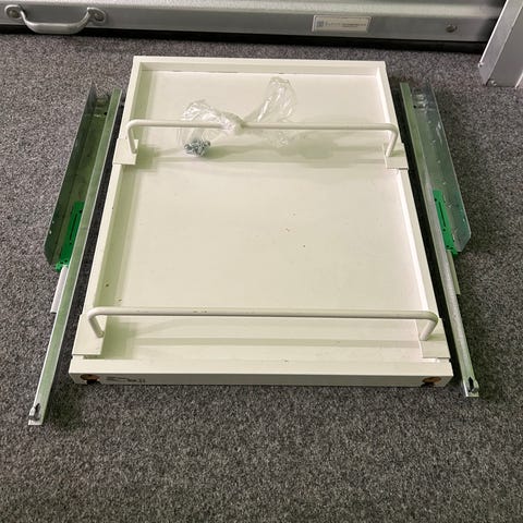 Plads til 12 par sko og med utræksskinner, så det kan trækkes ud af skabet for nemmere betjening 🙂 100 kr.