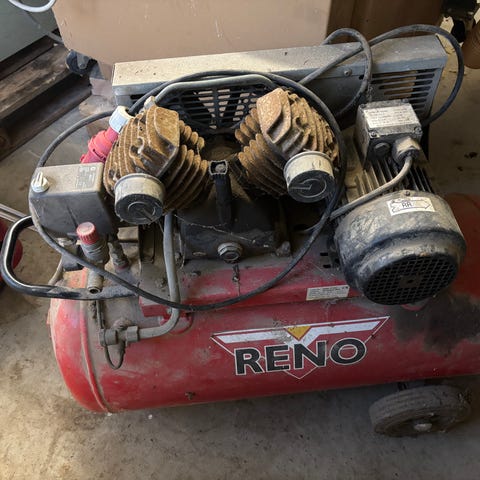 Kompressor Airliner B 2800B-50 CT 3 V400. Kompressor med 50 liters tryktank. Kompressoren er udstyret med remdrevet topstykke og elmotor til 400V trefaset kraft strøm. Velegnet til trykluftværktøj, oppumpning m.m. der kræver stabil trykluftforsyning. Fungere perfekt.