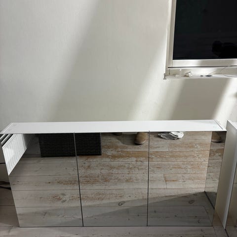 Hængeskab med spejllåge hvid med glashylder
